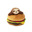Pluche Luiaard op Hamburger. 2 extra luide piepers. Afm. 19x18cm. Per stuk verpakt.